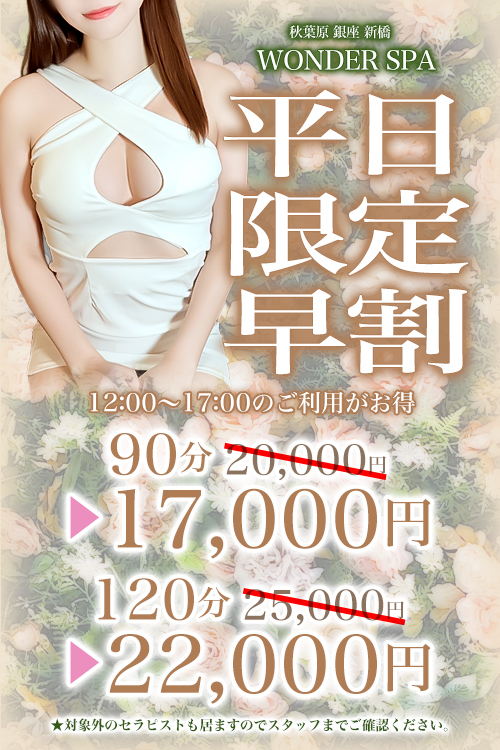 セラピスト一覧 お休み きよみや ゆり 清宮ゆり (23) T:152 B:102(I) W:61 H:95 お休み おのでら ともえ 小野寺ともえ (22) T:162 B:93(J) W:58 H:88 出勤時間 12:00 〜 18:00 くるみ いろは 胡桃いろは (28) T:159 B:105(I) W:61 H:98 秋葉原ルーム 出勤時間 20:00 〜 29:00 こじま あすか 小嶋明日花 (32) T:165 B:88(F) W:56 H:88 銀座ルーム お休み きくち なな 菊池なな (25) T:156 B:91(F) W:58 H:92 お休み よなぎ もも 夜凪もも (25) T:162 B:86(D) W:56 H:88 お休み たつみ さら 辰巳さら (22) T:152 B:90(F) W:58 H:84 お休み のざき なお 野崎なお (29) T:160 B:90(D) W:58 H:91 お休み はつね ゆら 初音ゆら (25) T:158 B:94(G) W:58 H:90 お休み せと ゆき 瀬戸ゆき (26) T:163 B:101(H) W:60 H:98 出勤時間 23:00 〜 28:00 おいかわ りな 及川りな (25) T:149 B:92(F) W:56 H:93 銀座ルーム お休み しいな りょう 椎名りょう (26) T:156 B:97(G) W:57 H:95 お休み みさき りあ 岬りあ (22) T:165 B:93(G) W:57 H:92 出勤時間 18:00 〜 27:00 さいおんじ つばき 西園寺つばき (28) T:171 B:88(E) W:60 H:86 秋葉原ルーム お休み にいむら まりか 新村まりか (27) T:167 B:99(F) W:58 H:93 お休み あしだ りほ 芦田りほ (24) T:157 B:95(F) W:57 H:89 出勤時間 13:00 〜 20:00 よねくら ふうか 米倉ふうか (30) T:156 B:88(F) W:54 H:86 銀座ルーム お休み あんどう めい 安藤めい (27) T:158 B:88(F) W:56 H:87 お休み ほしの りん 星野りん (22) T:152 B:82(D) W:55 H:84 お休み まつしま ねね 松島ねね (22) T:159 B:90(E) W:57 H:93 お休み すずかぜ ほのか 涼風ほのか (29) T:152 B:88(F) W:58 H:90 お休み さくら るな 紗倉るな (20) T:162 B:93(G) W:59 H:88 お休み のなか れいな 野中れいな (25) T:155 B:94(G) W:58 H:92 お休み なかがわ ゆう 中川ゆう (26) T:153 B:89(E) W:57 H:87 出勤時間 12:00 〜 19:00 かみや いく 神谷いく (26) T:164 B:90(D) W:56 H:85 銀座ルーム お休み あおい せりか 葵せりか (23) T:161 B:87(E) W:60 H:91 お休み しらいし ななせ 白石ななせ (28) T:165 B:87(D) W:58 H:86 お休み おきた れいら 沖田れいら (26) T:166 B:85(D) W:55 H:86 お休み みなみ ゆうり 南ゆうり (25) T:165 B:83(D) W:53 H:81 お休み しのはら るりあ 篠原るりあ (20) T:157 B:90(F) W:58 H:82 お休み おおたに あい 大谷あい (31) T:155 B:92(G) W:60 H:95 お休み ゆうき あみ 結城あみ (27) T:160 B:86(F) W:58 H:88 お休み あやせ ことり 絢瀬ことり (24) T:157 B:95(H) W:59 H:88 お休み なるせ あやか 成瀬あやか (24) T:157 B:89(F) W:57 H:87 お休み ほりきた さや 堀北さや (30) T:160 B:92(E) W:58 H:91 出勤時間 12:00 〜 17:00 はなせ みう 華瀬みう (24) T:159 B:94(H) W:59 H:91 秋葉原ルーム お休み わたぬき あきら 四月一日あきら (27) T:150 B:92(G) W:58 H:95 お休み たちばな うみ 立花うみ (25) T:152 B:85(E) W:55 H:83 出勤時間 21:00 〜 28:00 まつだ みく 松田みく (22) T:160 B:93(F) W:60 H:98 秋葉原ルーム お休み はやし ゆめ 林ゆめ (26) T:160 B:101(Ⅰ) W:60 H:90 お休み もりなが ここあ 森永ここあ (29) T:153 B:103(K) W:59 H:89 お休み もり なつき 森なつき (23) T:148 B:90(E) W:58 H:89 お休み ながみね うた 長嶺うた (20) T:156 B:90(E) W:54 H:86 お休み みずさわ ゆら 水沢ゆら (26) T:161 B:91(D) W:57 H:87 お休み さかした あん 坂下あん (23) T:157 B:92(F) W:58 H:94 お休み ゆめさき りおな 夢咲りおな (24) T:162 B:89(F) W:57 H:84 お休み つきしろ りあん 月城りあん (20) T:165 B:102(K) W:60 H:98 お休み もちづき はな 望月はな (28) T:157 B:78(C) W:57 H:83 お休み かわさき あみな 川崎あみな (20) T:165 B:92(F) W:57 H:95 お休み なかもり かれん 中森かれん (27) T:155 B:92(G) W:57 H:93 出勤時間 13:00 〜 19:00 ももせ かんな 桃瀬かんな (25) T:156 B:87(D) W:58 H:90 新橋ルーム お休み しみず まい 清水まい (27) T:153 B:89(F) W:56 H:85 お休み あいざわ もえ 愛沢もえ (22) T:150 B:89(D) W:60 H:90 出勤時間 22:00 〜 29:00 なつかぜ ののか 夏風ののか (25) T:164 B:82(C) W:58 H:85 銀座ルーム お休み かとう りこ 加藤りこ (27) T:164 B:86(C) W:56 H:88 お休み みたに あかり 美谷あかり (27) T:152 B:82(C) W:54 H:85 お休み みずの ひまり 水野ひまり (25) T:157 B:85(E) W:56 H:86 出勤時間 14:00 〜 20:00 にしの あかね 西野あかね (26) T:152 B:88(F) W:58 H:85 銀座ルーム お休み あまみ ゆりな 天海ゆりな (28) T:160 B:85(C) W:53 H:85 お休み みと はづき 水戸はづき (24) T:150 B:85(D) W:55 H:86 出勤時間 23:00 〜 29:00 くどう みり 工藤みり (19) T:151 B:83(D) W:53 H:82 秋葉原ルーム お休み ななせ ゆな 七瀬ゆな (24) T:162 B:85(D) W:59 H:85 お休み なかじょう のあ 中条のあ (22) T:158 B:90(E) W:60 H:87 お休み ふかだ すみれ 深田すみれ (30) T:160 B:88(F) W:57 H:87 お休み げつようびわり 【ご新規様限定】月曜日割 お休み しんじんわり 新人割 お休み はやわり 【何回でも使える】平日限定・早割 お休み げりらわり-1000 ゲリラ割イベント【1000円オフ】 出勤時間 21:00 〜 29:00 げりらわり ゲリラ割り2,000円OFF