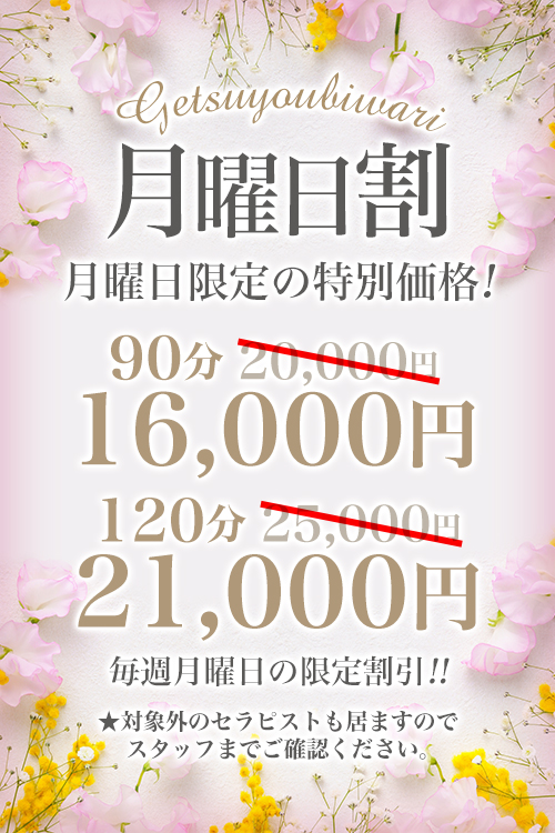 ご新規様は『月曜割』適応日☆日中ご案内お知らせ☆